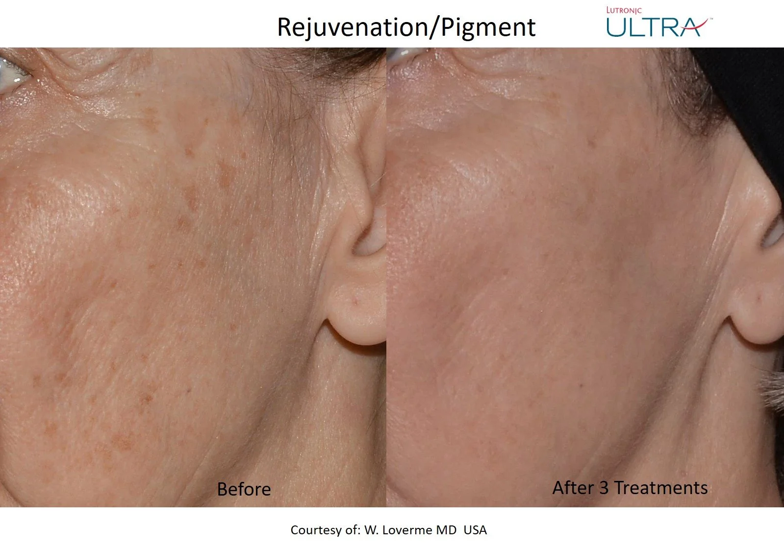 Before and after of skin rejuvenation and pigment after 3 sessions.